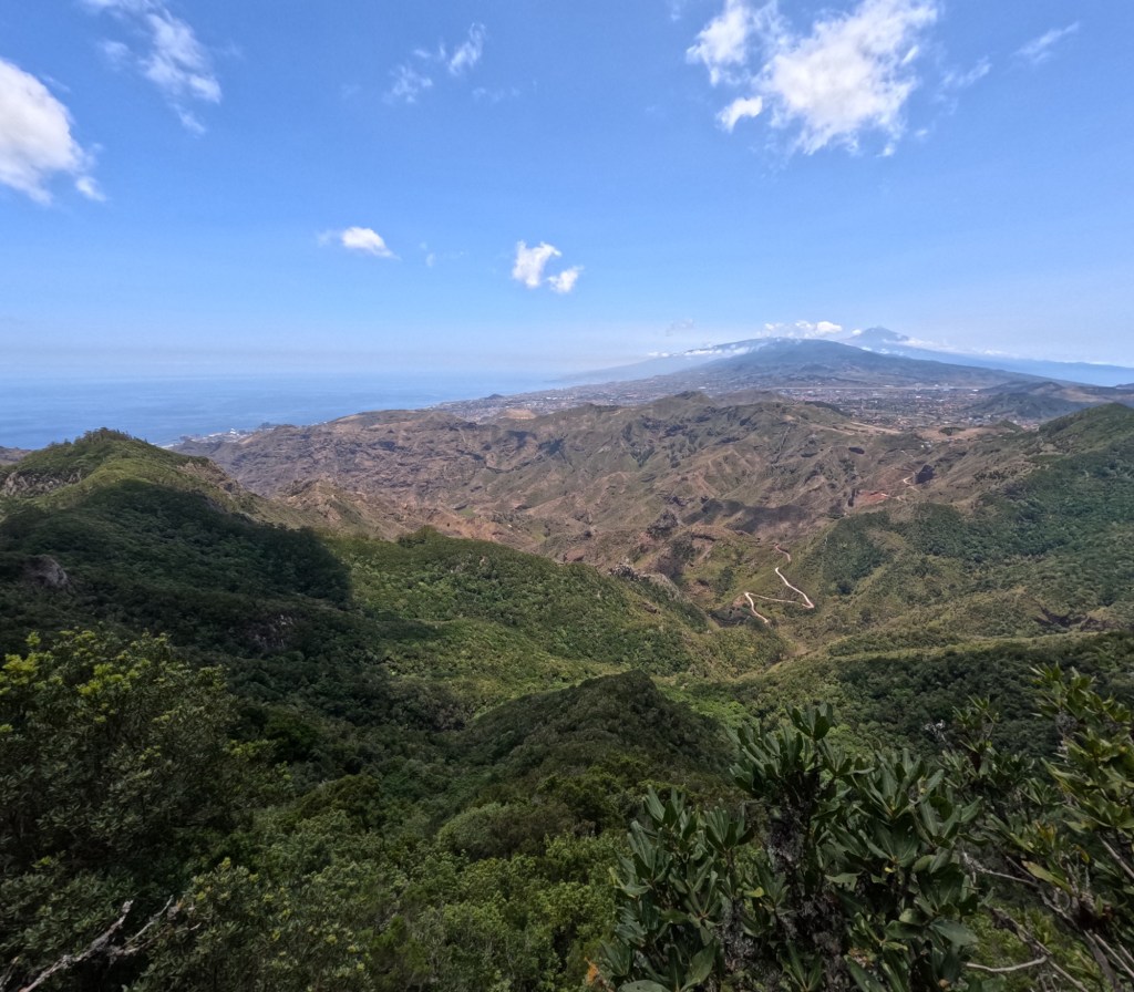 At the viewpoint, the reward is spectacular. On clear days, the view stretches over the rugged Anaga ridges, deep green valleys, and even across to Santa Cruz and the Atlantic Ocean. When the clouds roll in—as they often do—you might find yourself standing above a soft white sea of mist, with mountain peaks rising like islands. It’s unpredictable, but always impressive.